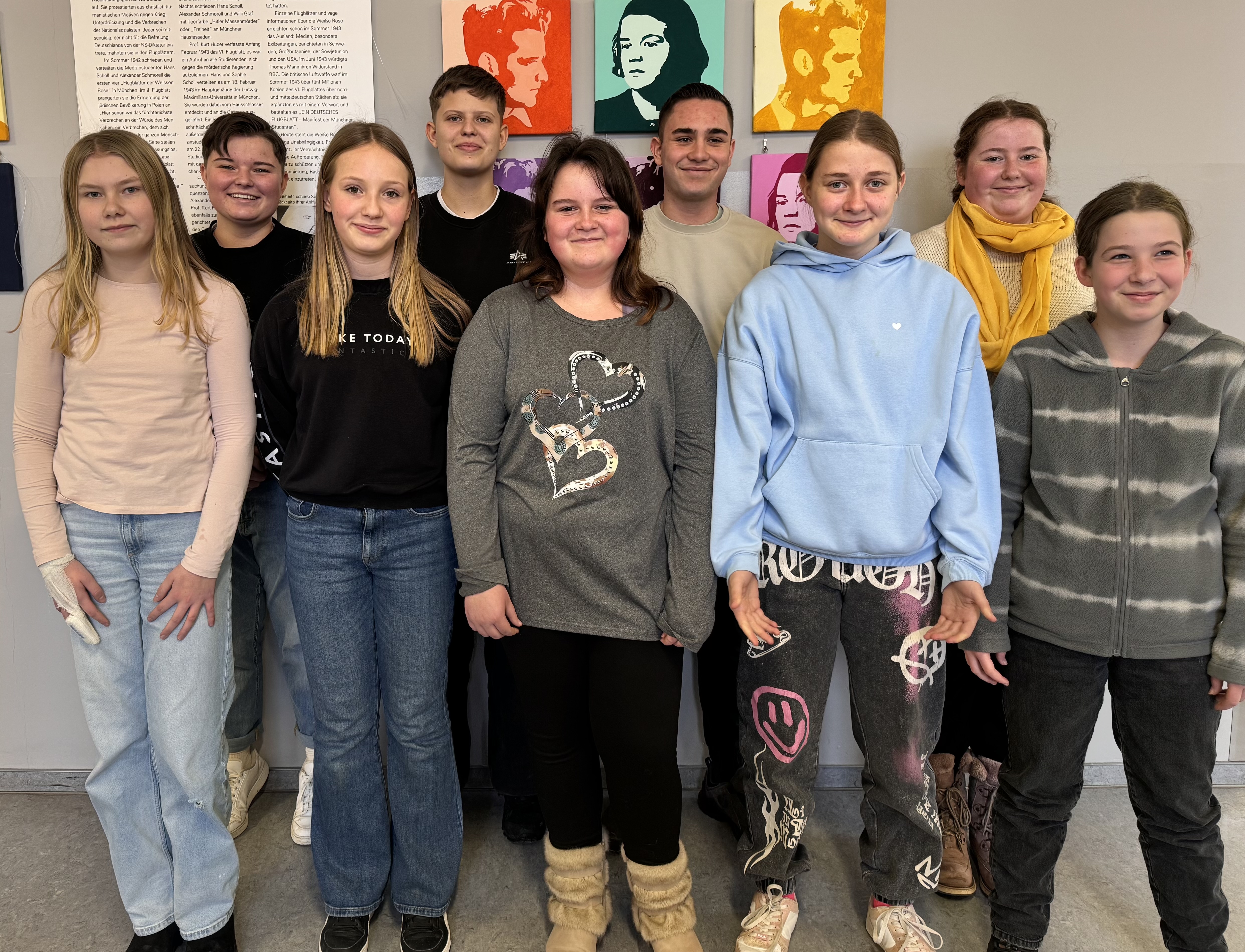 Auf dem Bild zu sehen sind: Herr Steinmetz, Jason Zander, Erwin Hoppe, Herr Bernhardt, Tamino Pergelt, Marc-Wilhelm Kirsten, Alexander Grün, Nils Güttel, Herr Winterfeld, Julian Ronny Möstl (stehend v.l.), Lucy Krüger, Lennox Puttkammer, Elias Zweimann (kniend v.l.) (Text: Herr Steinmetz, Bild: privat)